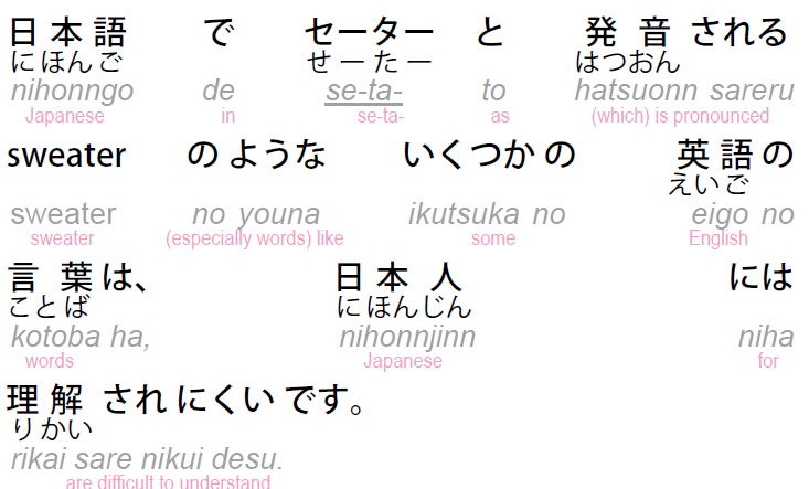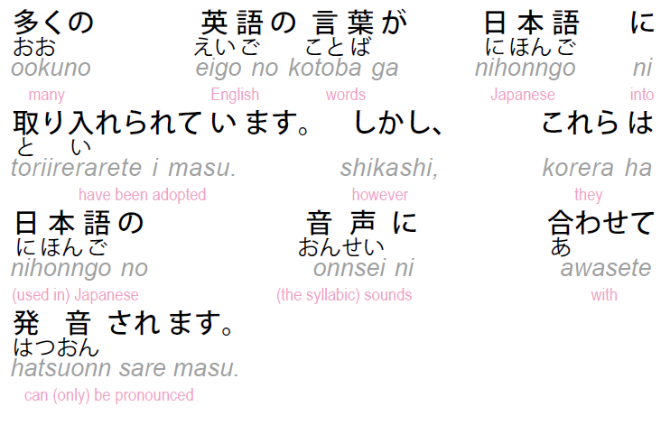 Many English words have been adopted into Japanese. However, they can only be pronounced with the syllabic sounds used in Japanese.