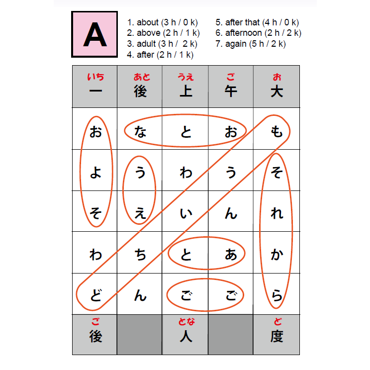 クロスワードには異なる663の日本語の言葉が掲載されています。これらはJLPT4~5に含まれる確率が高い言葉です。